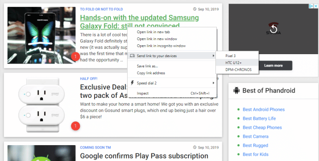 Bien que Chrome ait pris en charge la possibilité de parcourir vos onglets ouverts et récents sur plusieurs périphériques depuis un certain temps déjà, cette fonction d’envoi vers un périphérique rend les choses un peu plus rapides. Qu’est-ce que tu as fait si longtemps sur Google ? Si vous passez de la navigation sur un PC ou un ordinateur portable à un téléphone ou vice versa, votre vie devient beaucoup plus facile.