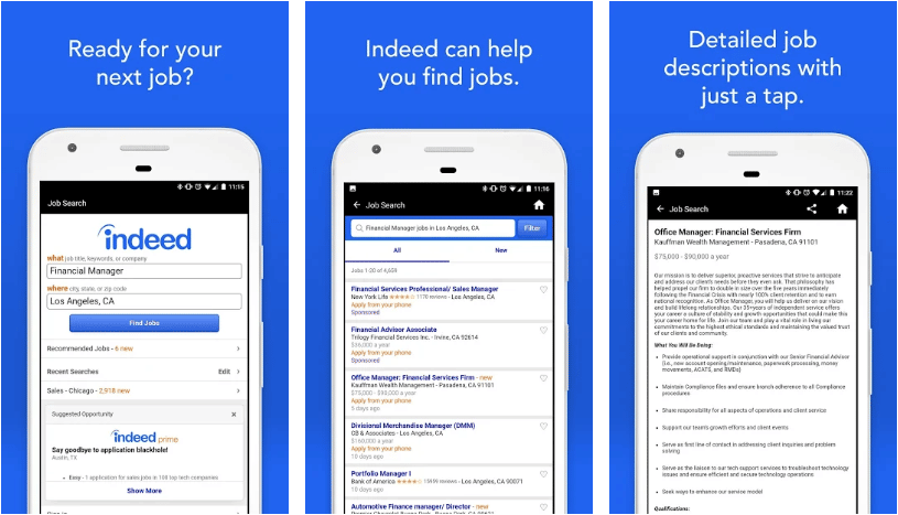 LinkedIn est l’une des principales sociétés de réseautage d’affaires et son application compagnon est un excellent outil pour vous aider à trouver votre prochain emploi. Recherche par titre, emplacement, secteur d’activité ou par mots-clés spécifiques. Vous n’avez pas beaucoup de temps pour chercher ? Laissez l’application faire le travail pour vous. Entrez des données sur le type d’emploi que vous recherchez et l’application LinkedIn vous informera des postes vacants répondant à vos besoins. Une fois que vous avez trouvé un emploi qui vous intéresse, utilisez l’application pour postuler. C’est aussi simple que ça.